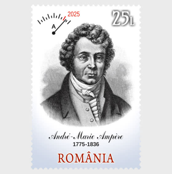 Romfilatelia 和 Poșta Română 于今年10月28日(星期二)推出纪念一位伟大的法国科学家的周年纪念特刊,总标题为《世界科学名人:安德烈-玛丽·安培》。该特刊包含一枚邮票和一张首日封。