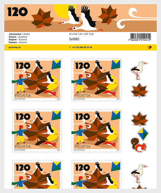 - Stamp Size: 33 × 28mm Sheet Size: 100 × 198mm (open), 100×99 mm (folded) 5 rows of 2 stamps