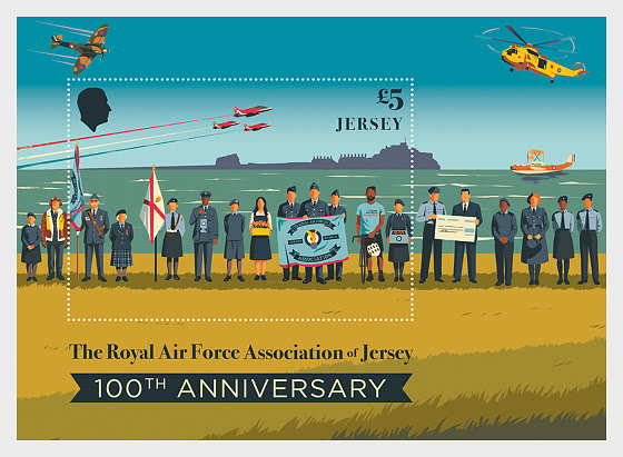 Jersey Post hat zum Jubiläum der Royal Air Force Association (RAFA) Jersey einen Satz mit sechs Briefmarken, einem Souvenirbogen und einem Kleinbogen herausgegeben. Die Gestaltung stammt von dem großartigen Harry Milburn, der sich von originalen Rekrutierungsplakaten der RAF inspirieren ließ und den Briefmarken einen Hauch moderner Nostalgie verleiht.