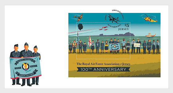 Jersey Post hat zum Jubiläum der Royal Air Force Association (RAFA) Jersey einen Satz mit sechs Briefmarken, einem Souvenirbogen und einem Kleinbogen herausgegeben. Die Gestaltung stammt von dem großartigen Harry Milburn, der sich von originalen Rekrutierungsplakaten der RAF inspirieren ließ und den Briefmarken einen Hauch moderner Nostalgie verleiht.