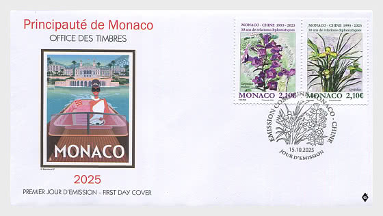 2025 Emisión Conjunta Mónaco/China - 30 Años de Relaciones Diplomáticas - Sobre de Primer Dia for only GBP £4.29