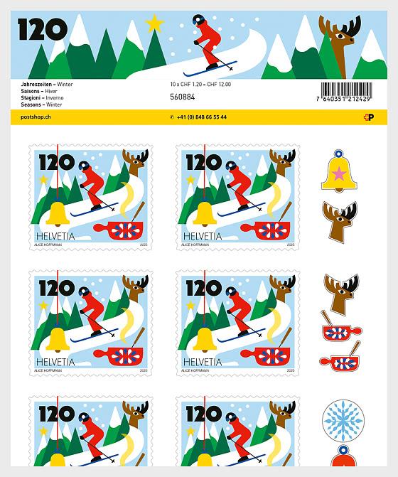 - Stamp Size: 33 × 28mm Sheet Size: 100 × 198mm (open), 100×99 mm (folded) 5 rows of 2 stamps