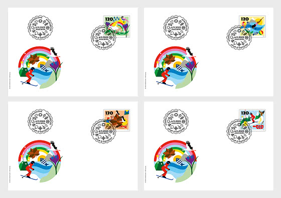 - Stamp Size: 33 × 28mm Sheet Size: 100 × 198mm (open), 100×99 mm (folded) 5 rows of 2 stamps