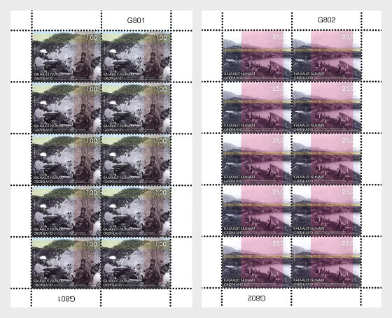 Nous souhaitions depuis longtemps émettre une série de timbres explorant le riche trésor de photographies ethnographiques prises au Groenland. Cette nouvelle série offre non seulement un aperçu visuel de l'histoire culturelle du Groenland, mais rend également hommage au riche patrimoine et aux nombreux récits de vie que recèlent ces anciennes photographies. Mettre en lumière des images ethnographiques crée un pont entre le passé et le présent et permet au spectateur de réfléchir à l'identité culturelle du Groenland. Cette série associera instruments de paiement postal, objets de collection et un élément de diffusion culturelle dynamique. Elle est créée en collaboration avec Ina Rosing. Comme le savent nombre de nos fervents collectionneurs, elle est la fille de Dagny Rosing et Jens Rosing, le « Grand Vieux » des timbres groenlandais. Ina déclare à propos de ses deux premiers timbres de la série : « J'ai cherché un équilibre où les couleurs donnent vie aux photographies et suscitent certaines émotions, sans pour autant dominer les œuvres elles-mêmes. » Le premier timbre représentant un groupe de personnes dans les montagnes a été pris par W. Thalbitzer en 1906, tandis que celui représentant les femmes près des tentes en peaux de bêtes a été pris par Th. N. Krabbe en 1904. Les deux photos proviennent de Tasiilaq, dans l'est du Groenland.