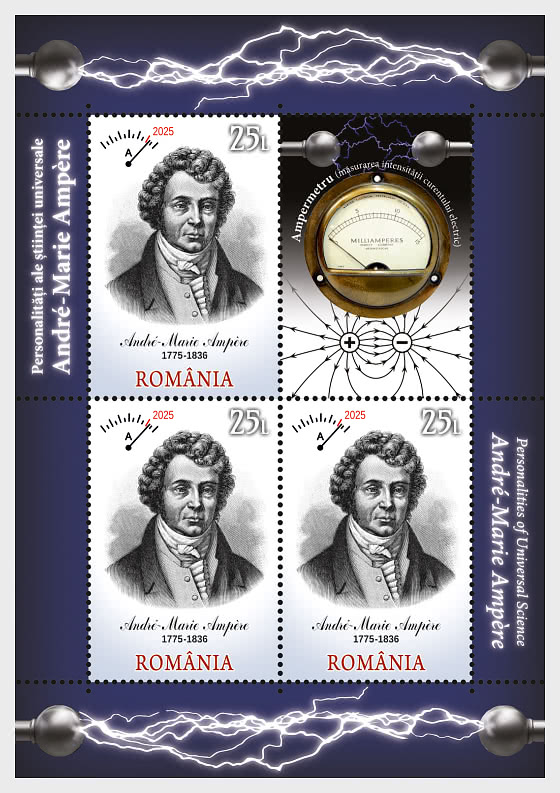 Romfilatelia et Poșta Română mettent en circulation le mardi 28 octobre de cette année une émission anniversaire consacrée à un grand scientifique français sous le titre générique « Personnalités de la science universelle », André-Marie Ampère, composée d'un timbre-poste et d'une enveloppe Premier Jour.