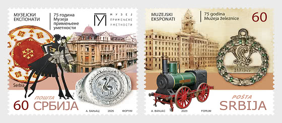 2025 Музейные экспонаты: 75 лет Музею прикладного искусства, 75 лет Железнодорожному музею - Набор CTO for only GBP £0.91