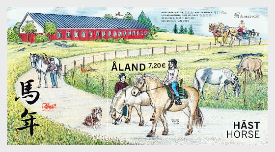 Миниатюрный блок, посвященный Году Лошади, из серии марок с животными китайского гороскопа запечатлел жизнь лошадей в конюшне Аландских островов. Вдохновением для выпуска послужила конюшня Stall JoY в деревне Самуэльсторп в Хаммарланде – единственная конюшня на Аландских островах, предлагающая иппотерапию для детей и взрослых с ограниченными возможностями.