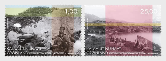 Мы давно хотели выпустить серию марок, посвящённую богатейшему наследию этнографических фотографий Гренландии. Эта новая серия не только позволяет визуально взглянуть на культурную историю Гренландии, но и отдаёт дань уважения богатому наследию и многочисленным историям жизни, запечатлённым в этих старых фотографиях. Вывод этнографических изображений на свет создаёт мост между прошлым и настоящим и позволяет зрителю поразмышлять о культурной самобытности Гренландии. Серия будет представлять собой сочетание почтовых платёжных инструментов, предметов коллекционирования и яркого культурного наследия. Серия создана в сотрудничестве с Иной Розинг. Как известно многим нашим увлечённым коллекционерам, она дочь Дагни Розинг и Йенса Розинга, «Великого Старика» гренландских марок. Ина говорит о своих первых двух марках серии: «Я пыталась найти баланс, чтобы цвет оживлял фотографии и вызывал определённые эмоции, не подавляя при этом сами прекрасные работы». Первая марка с изображением группы людей в горах была сделана В. Талбицером в 1906 году, а марка с изображением женщин у палаток из шкур животных – Т. Н. Краббе в 1904 году. Обе фотографии сделаны в Тасиилаке в Восточной Гренландии.